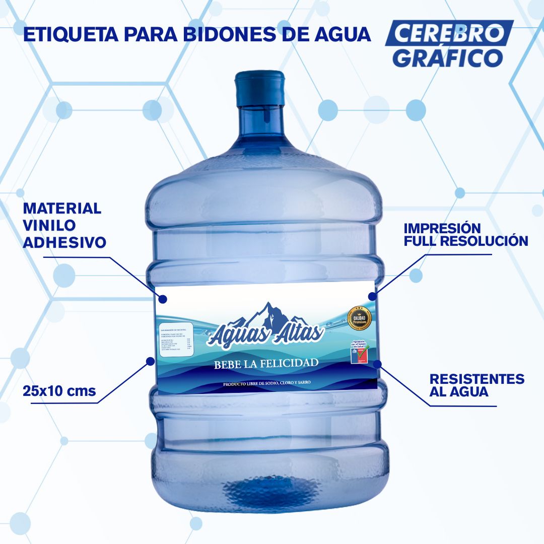 ¡Dale un toque profesional a tus bidones de agua con nuestras etiquetas adhesivas personalizadas de 25x10 cms! Diseñadas específicamente para destacar en superficies cilíndricas, nuestras etiquetas combinan durabilidad y estilo.